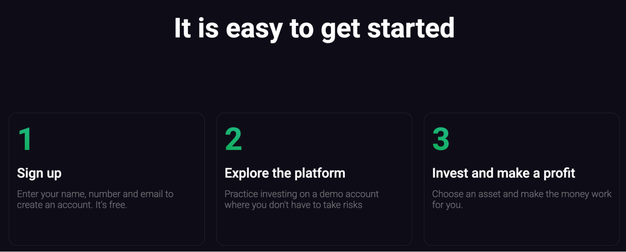 Don’t miss your chance to participate in the financial revolution. Registration on the platform takes only a few minutes, and you won’t need to worry about risks: all investments are safeguarded with international support.